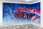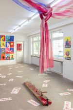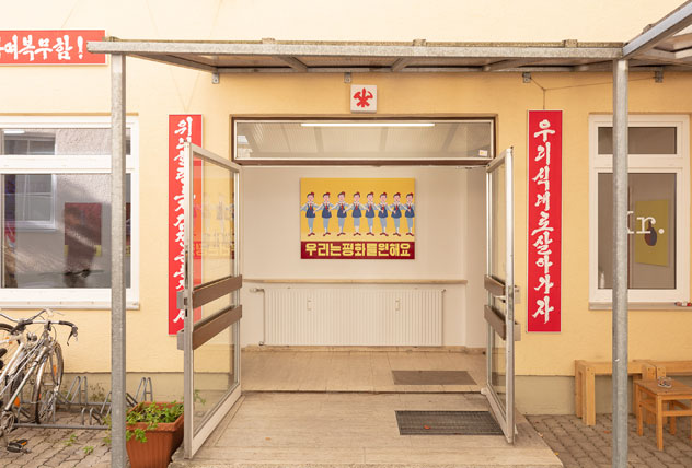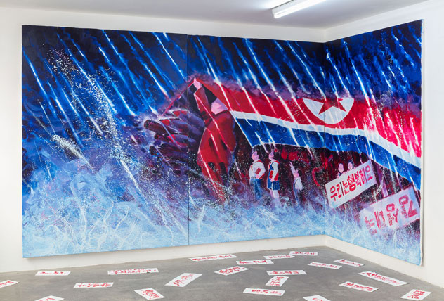 Der Kurator und Künstler Jae-Hyun Yoo hat Sun Mu für einen Arbeitsaufenthalt nach München eingeladen um im Kunstraum die mehrheitlich hier entstandenen Werke zu zeigen. Sun Mus Malerei lehnt sich formal an die sog. Propagandabilder seiner Heimat an, bricht aber inhaltlich deren ideologische Botschaften und Themen. So dienen die Mittel der Überhöhung, des Personenkultes und verordnetes Kollektivglücks als Schablonen für eine politische Bildkunst, deren vermeintlich vertrauten Chiffren unter verkehrten Vorzeichen Sun Mus politische und gesellschaftliche Perspektive spiegeln, die auch und gerade Korruption, Demokratiedefizit und Machtmissbrauch in seiner neuen Heimat, im Westen allgemein befragen. Auf den ersten Blick wirken die Bilder wie eine Pop-Art-Variante von Propagandapostern der nordkoreanischen Arbeiterpartei, aber in seiner alten Heimat sind die Kunstwerke Kapitalverbrechen. »Das Gesicht des Großen Führers zu malen, ohne Genehmigung der Partei, das ist Gotteslästerung. Niemand darf das. Aber ich fordere diesen Gott heraus.«